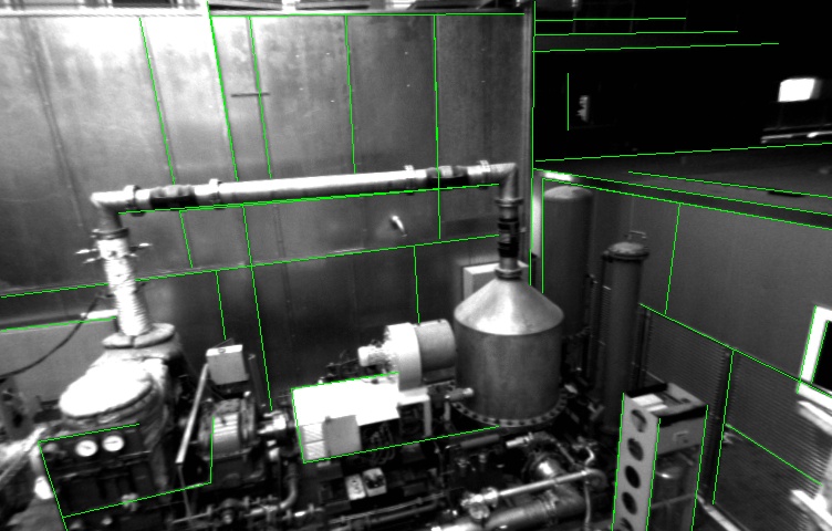 首先根据相机系下的重力方向(假设已经通过初始得到),可以筛选出属于垂直主方向(vDD)的 2D 线段; 之后利用余下的法向量确定出水平法向量的数量和朝向,同时筛选出方向是水平的线段; 最后,以同样的方法利用最后剩下的法向量确定出倾斜法向量的数量和朝向。