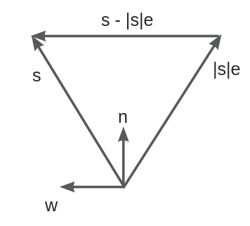 \[\theta_r = \theta_i\] \[\sin \theta_t = \min ( 1, \frac{n_1}{n_2} \sin \theta_i ) \Leftarrow n_1 \sin \theta_i = n_2 \sin \theta_t\] \[r_s = \left | \frac{n_1 \cos \theta_i - n_2 \cos \theta_t}{n_1 \cos \theta_i + n_2 \cos \theta_t} \right |\] \[r_p = \left | \frac{n_2 \cos \theta_i - n_1 \cos \theta_t}{n_2 \cos \theta_i + n_1 \cos \theta_t} \right |\] \[R_{eff} = \frac{R_s + R_p}{2} = \frac{r_s^2 + r_p^2}{2}\] \[K_r = \min (1, R_{eff})\] \[K_t = 1 - K_r\]值得注意的是,当从光密介质射向光疏介质,即 $n_1 > n_2$ 时,可能存在 $\frac{n_1}{n_2} \sin \theta_i > 1 $ 的情况,此时 $\sin \theta_t$ 应被限制为 1,否则无意义。此时 $\cos \theta_t = 0 \Rightarrow R_{eff} = 1$,即全反射。